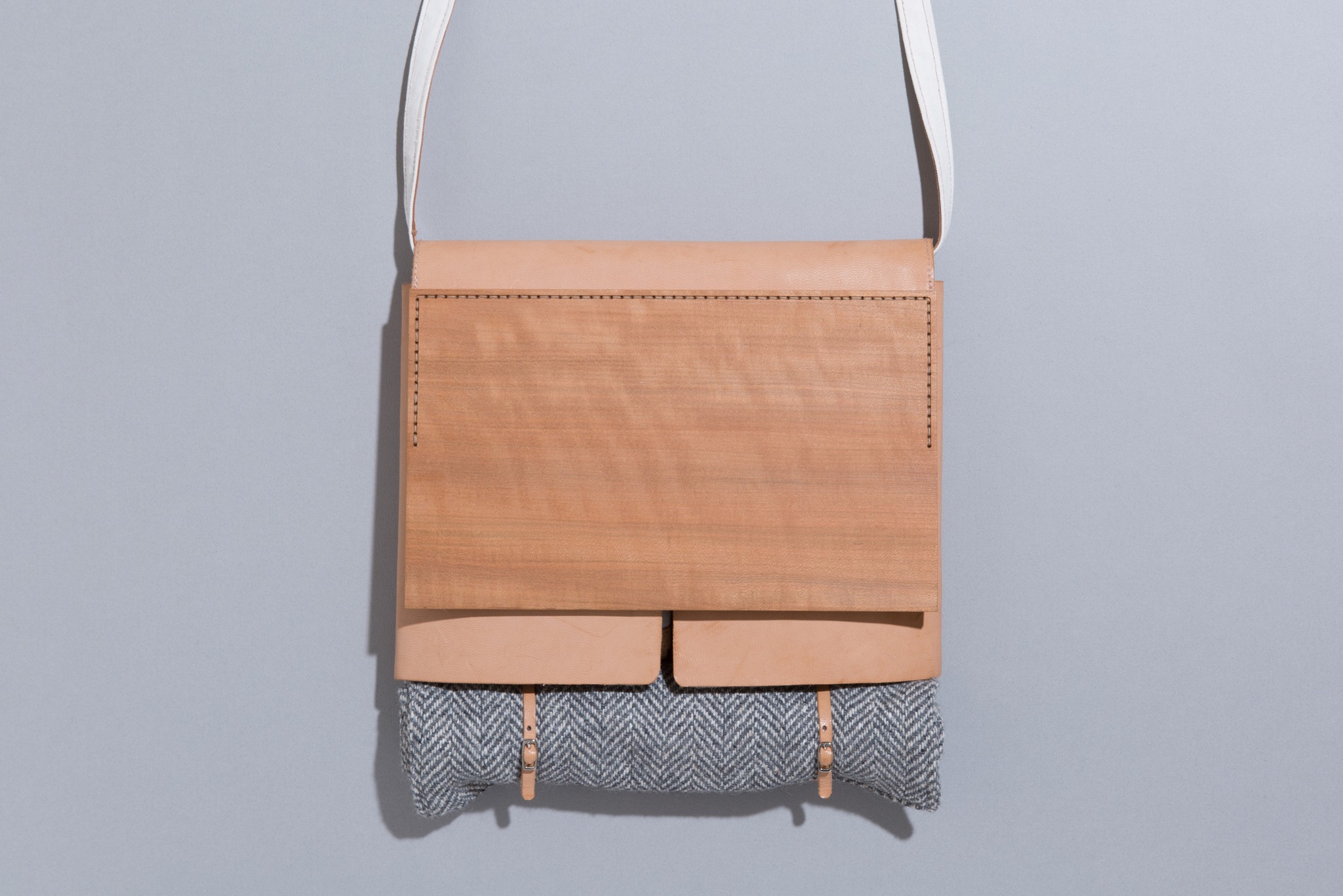 天然木と革を組み合わせて制作したクラッチバッグ、持ち手と本体を付け替えて使えるハンドバッグ、お酒を持ち歩くためのバッグなど個性的な作品を中心に展示いたします。