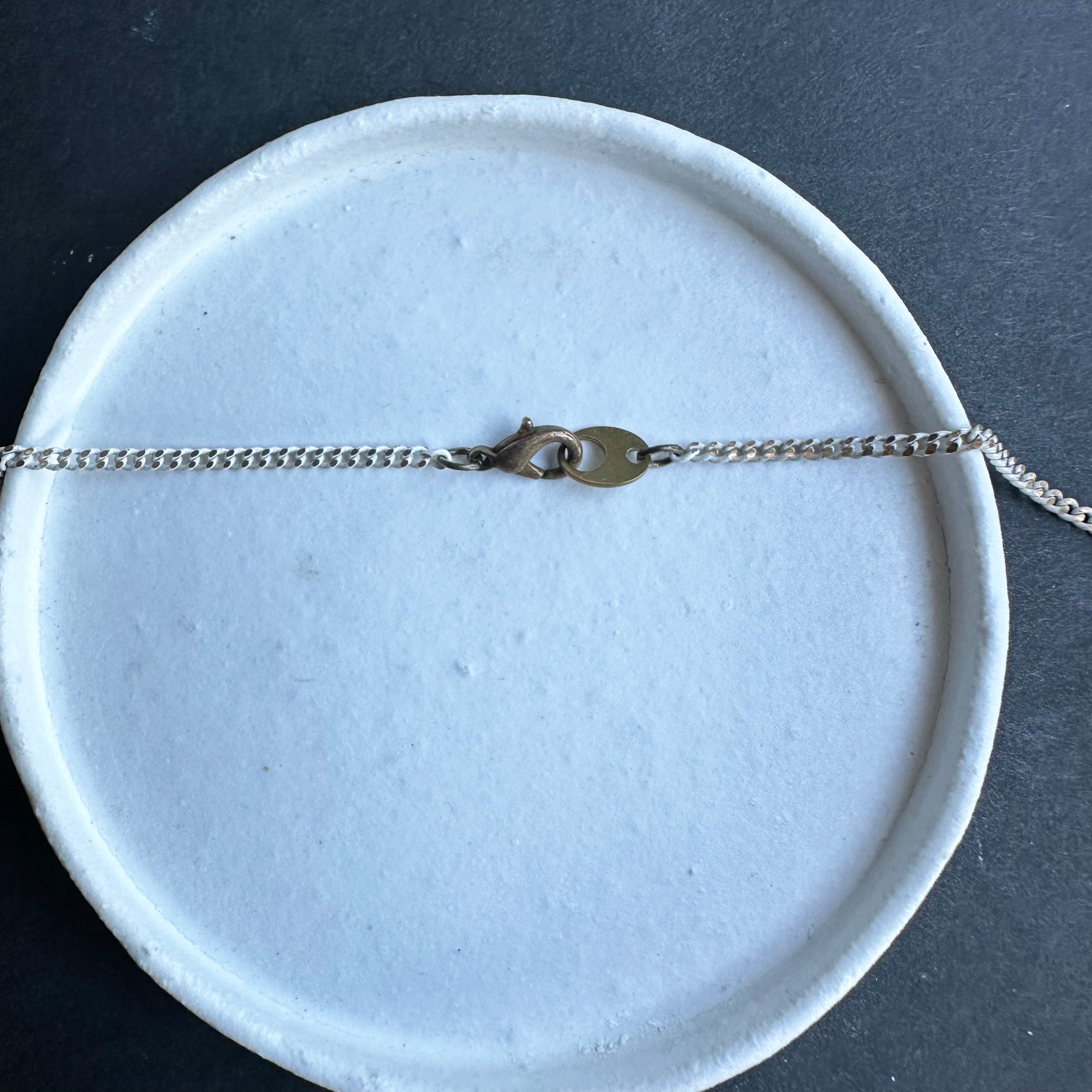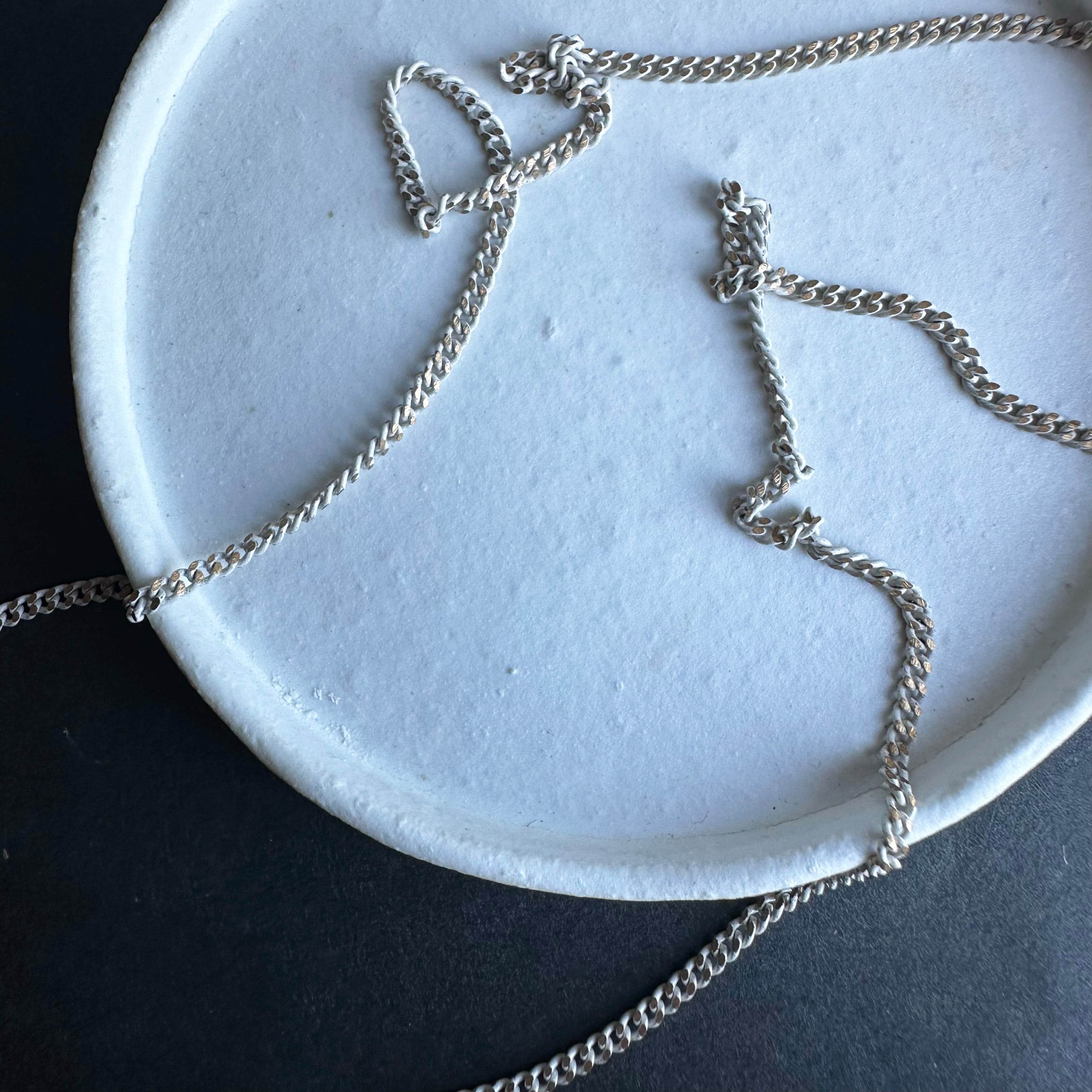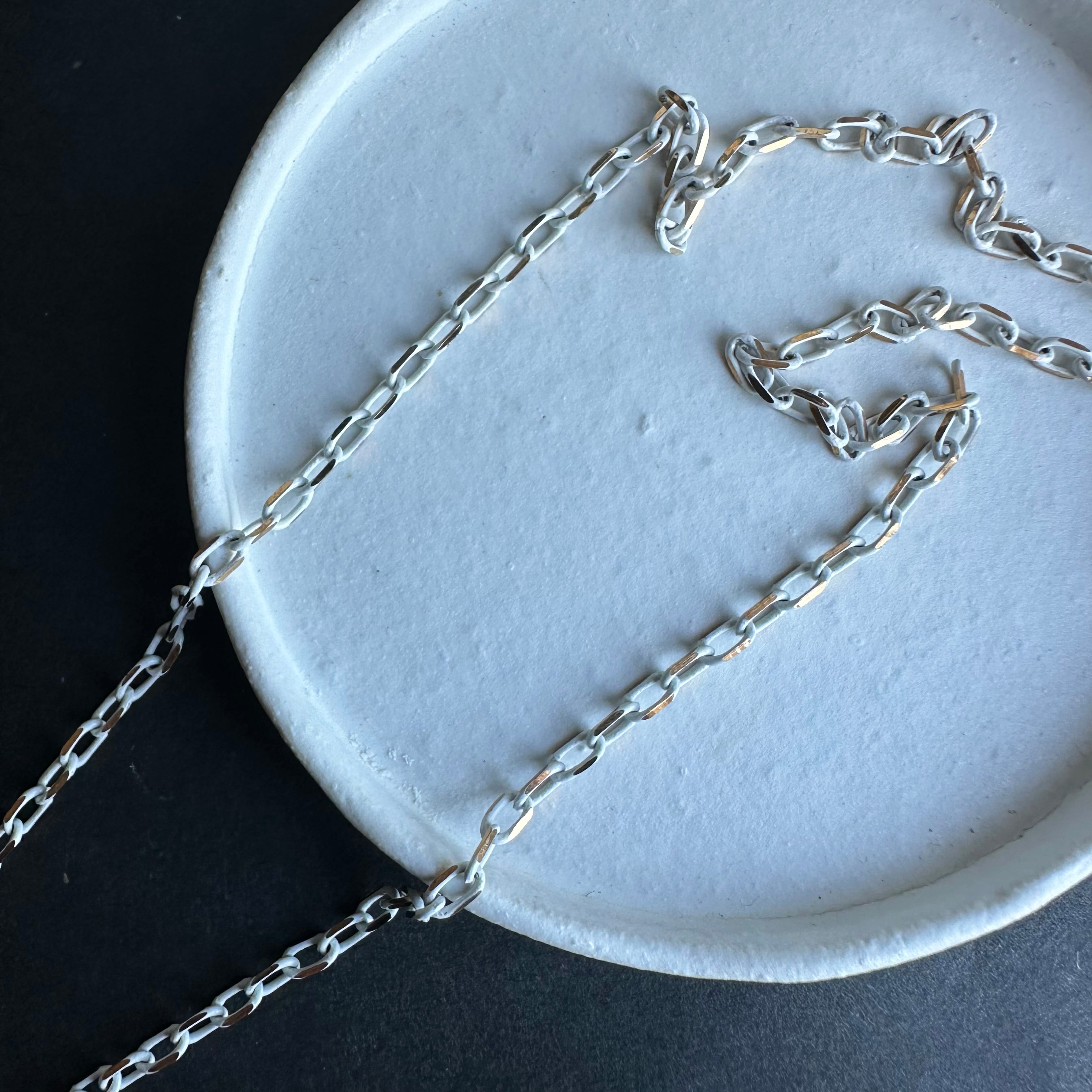 emamimaではシルバーのチェーンが多いですが、こちらはデッドストックで買い付けたチェーンを切ってネックレスにしています。
