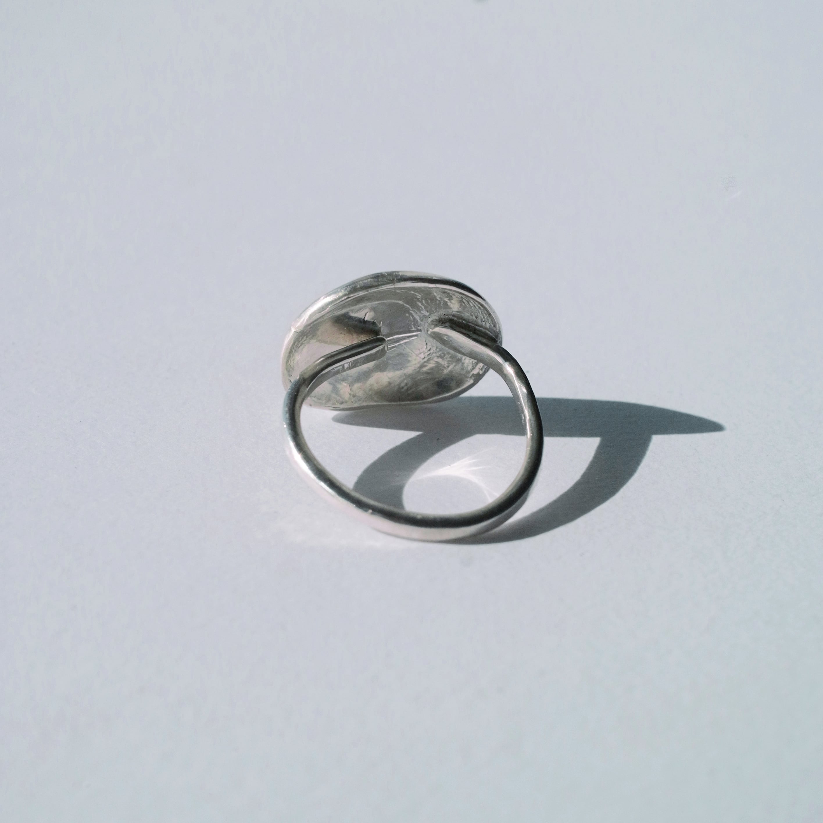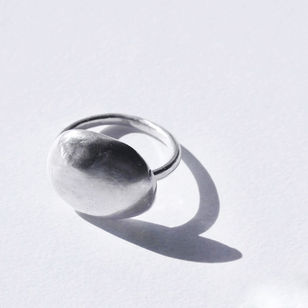 丸い石のような表面が少しゴツっとしたフリーサイズのリングです。