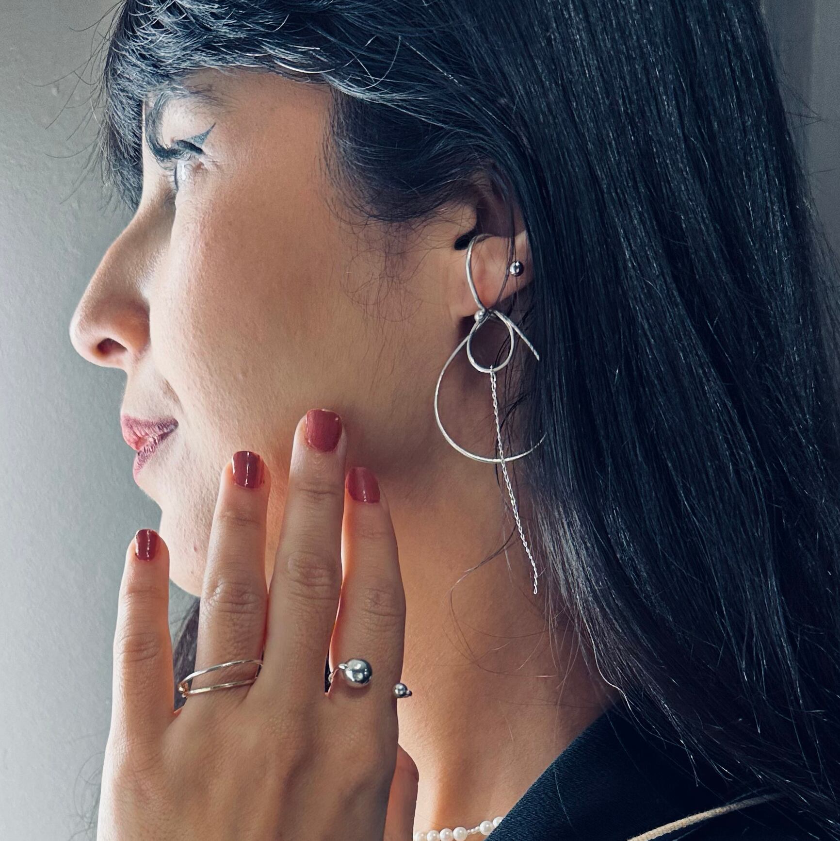 写真2枚目以降は別売のイヤーカフやネックレスチェーンとの組み合わせた例です。