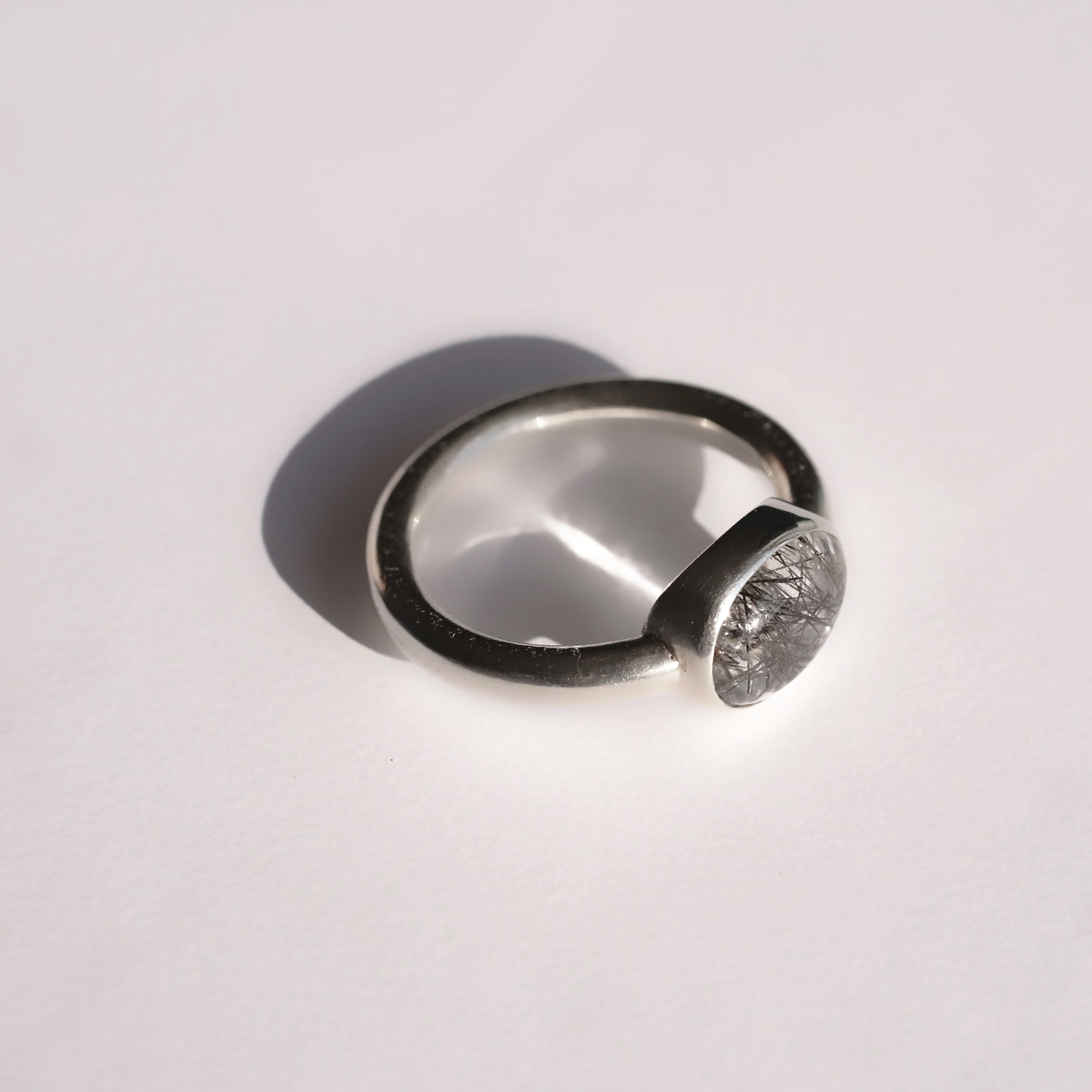ぽってりとしたシルバーのリングにブラックルチルクオーツを留めました。